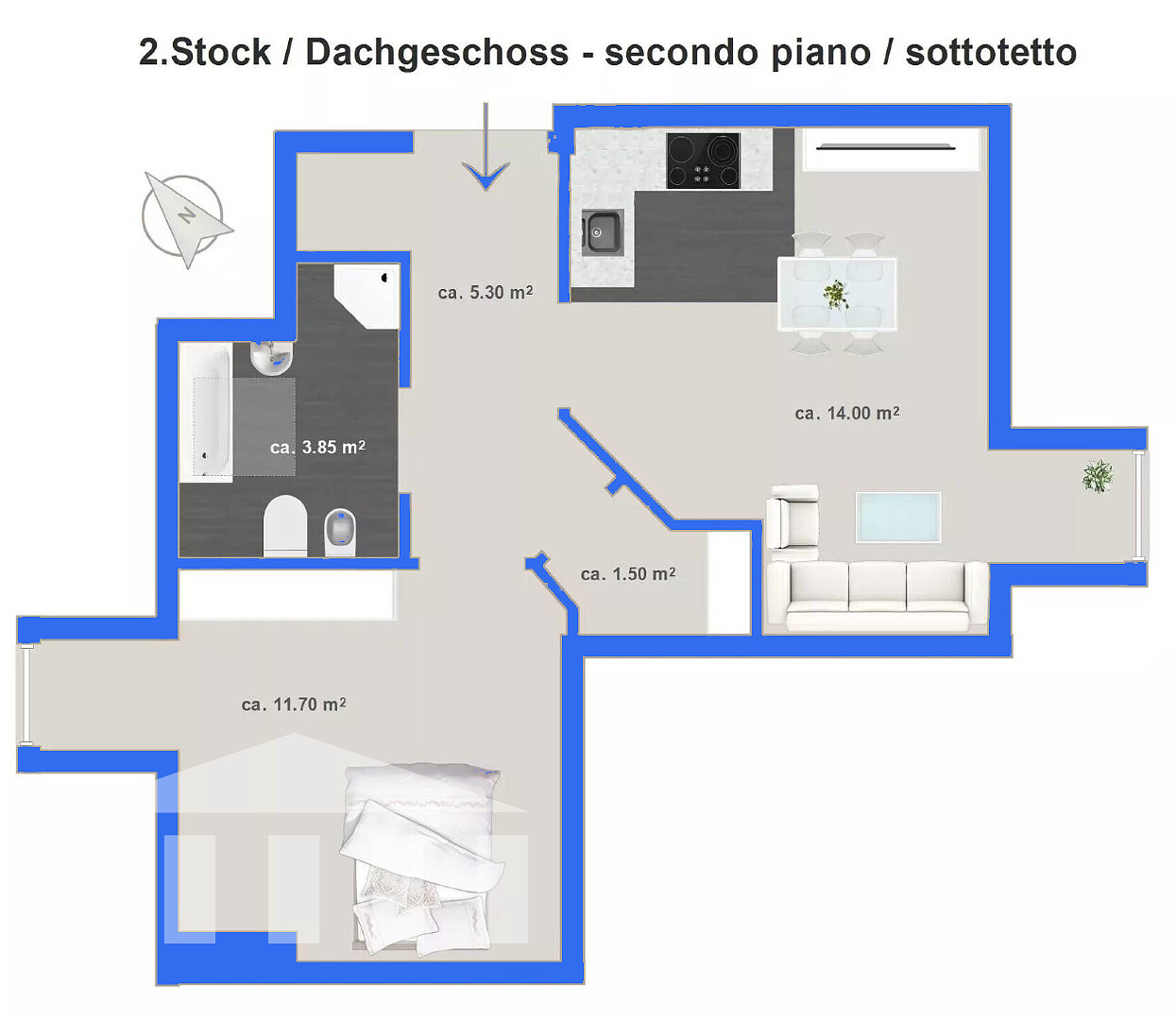 Accogliente attico in vendita a Nova Ponente. L'immobile dispone di un soggiorno open space, una camera da letto, un bagno ed è in ottime condizioni. Si trova al 2° piano e la superficie abitabile netta è di 36 m². L'appartamento è libero da vincoli e ideale per single o coppie che desiderano godersi la tranquillità e la natura o come casa vacanze. Un garage opzionale per 35.000€ è disponibile. Inoltre, ci sono negozi e ristoranti nelle vicinanze. Un'opportunità perfetta per immergersi nell'ambiente idilliaco di Nova Ponente.