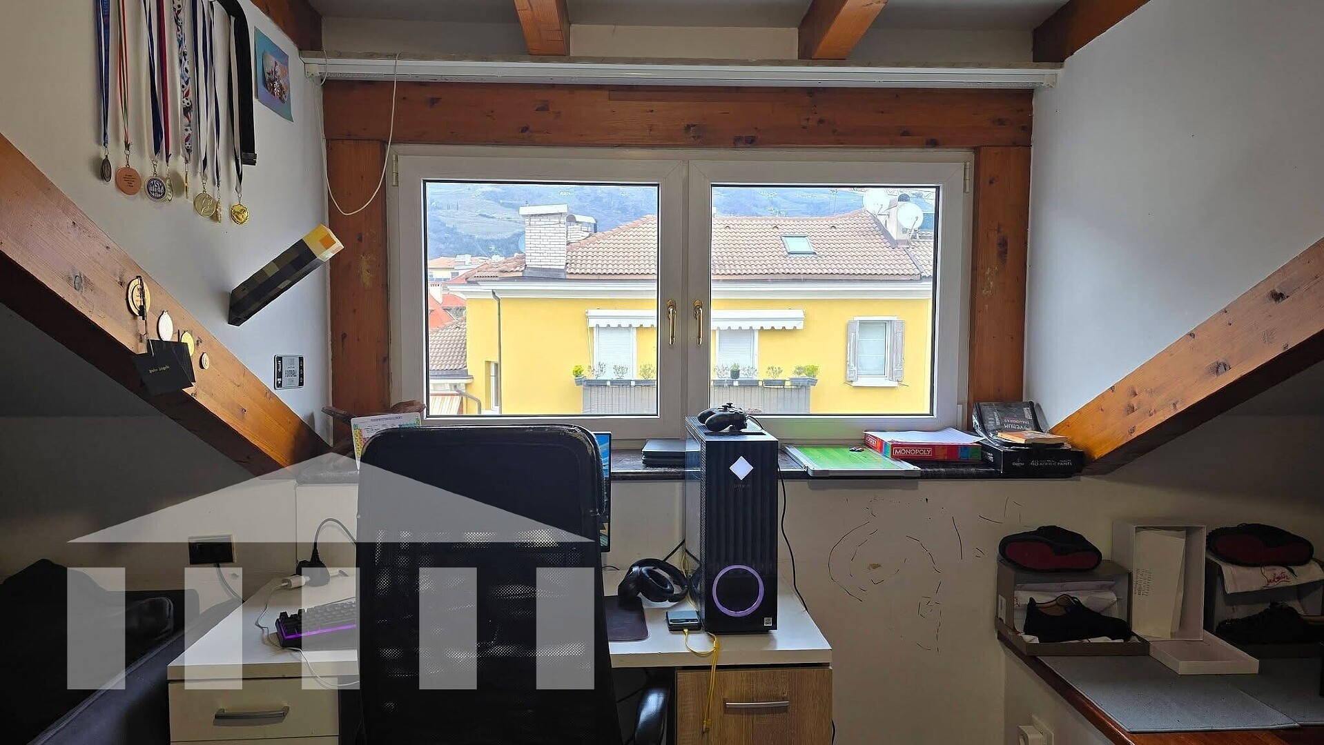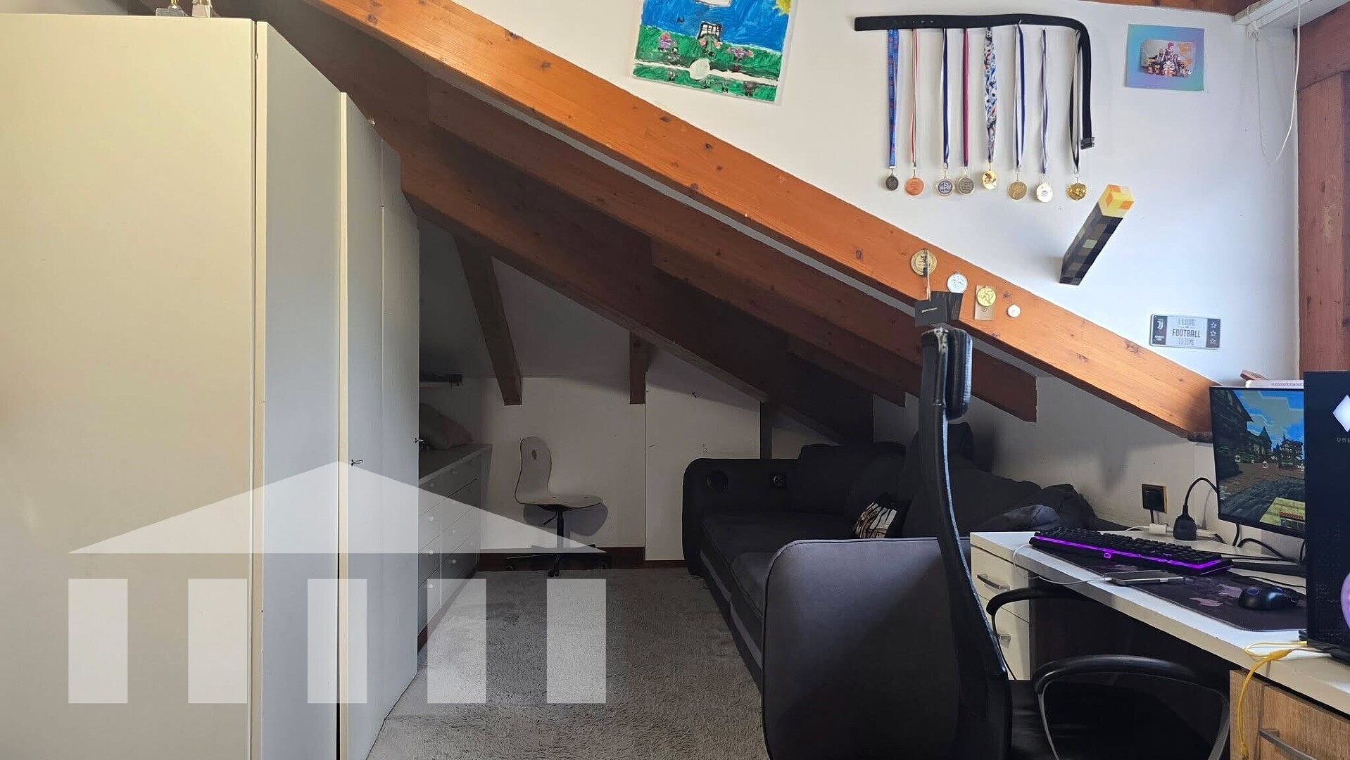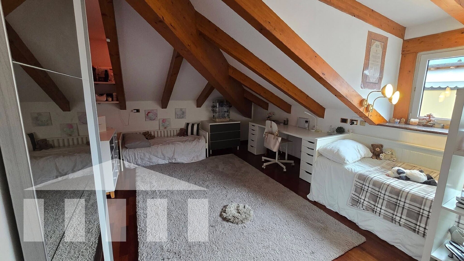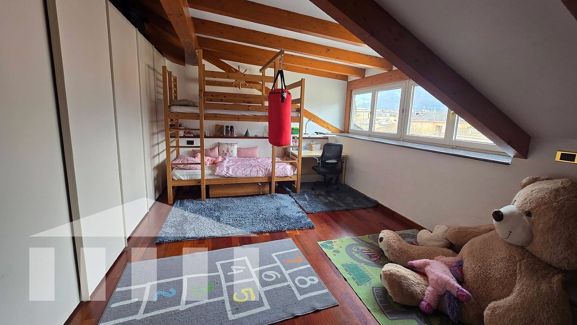 Attualmente al piano superiore ci sono tre camere da letto; la stanza al piano inferiore è ideale anche come studio, ufficio o locale polifunzionale.